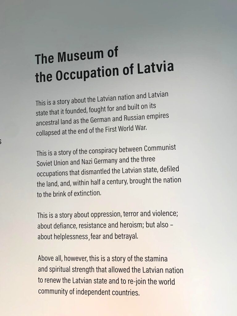 Il Museo dell’occupazione della Lettonia è una miniera di informazioni e materiali, su mezzo secolo di occupazione sovietica (ma pensa, anche qui!), dal 1940 al 1991. Storie di deportazioni, omicidi, torture, carceri, gulag e altre sofferenze. Ha una ricca quantità di foto, filmati, libri, pubblicazioni, documenti ufficiali, oggetti di guerra e della vita quotidiana, pannelli esplicativi e percorsi interattivi.